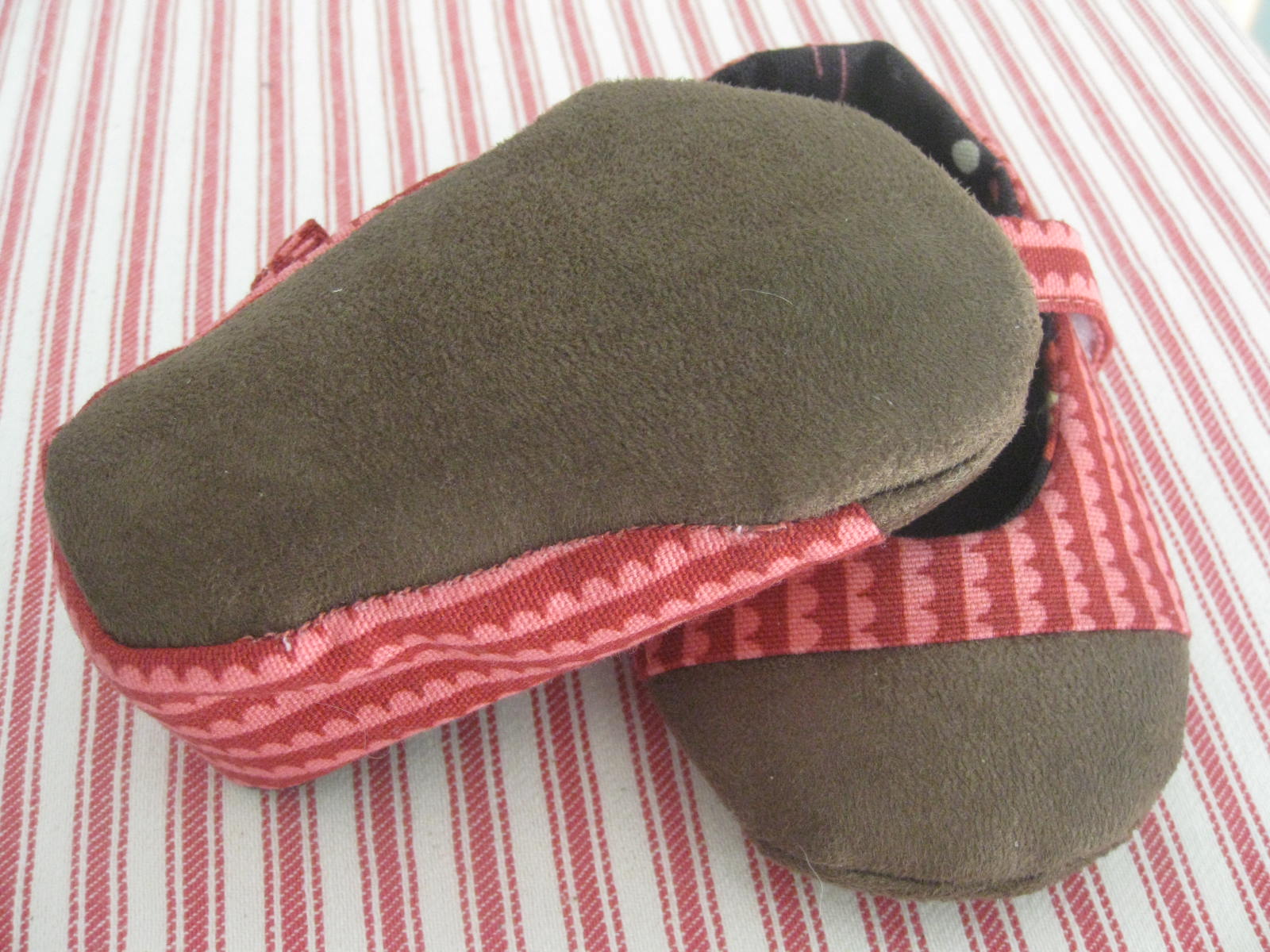 Most of my projects begin with “Oh I can sew that”, and everyone around me rolling their eyes. I pretty much say this about most things that can possibly be sewn, including baby shoes. I had purchased some Tommy Tickle baby shoes for my first daughter, and I loved them. They were perfect because little baby feet are still developing their muscles and really shouldn’t have hard soles, and these shoes had suede soles. I must confess I put these old shoes on my second daughter, and after cringing about how absolutely worn out and dirty they were, and how my poor second child really has gotten nothing new, I decided I was going to make her first pair of shoes (commence eye rolling).