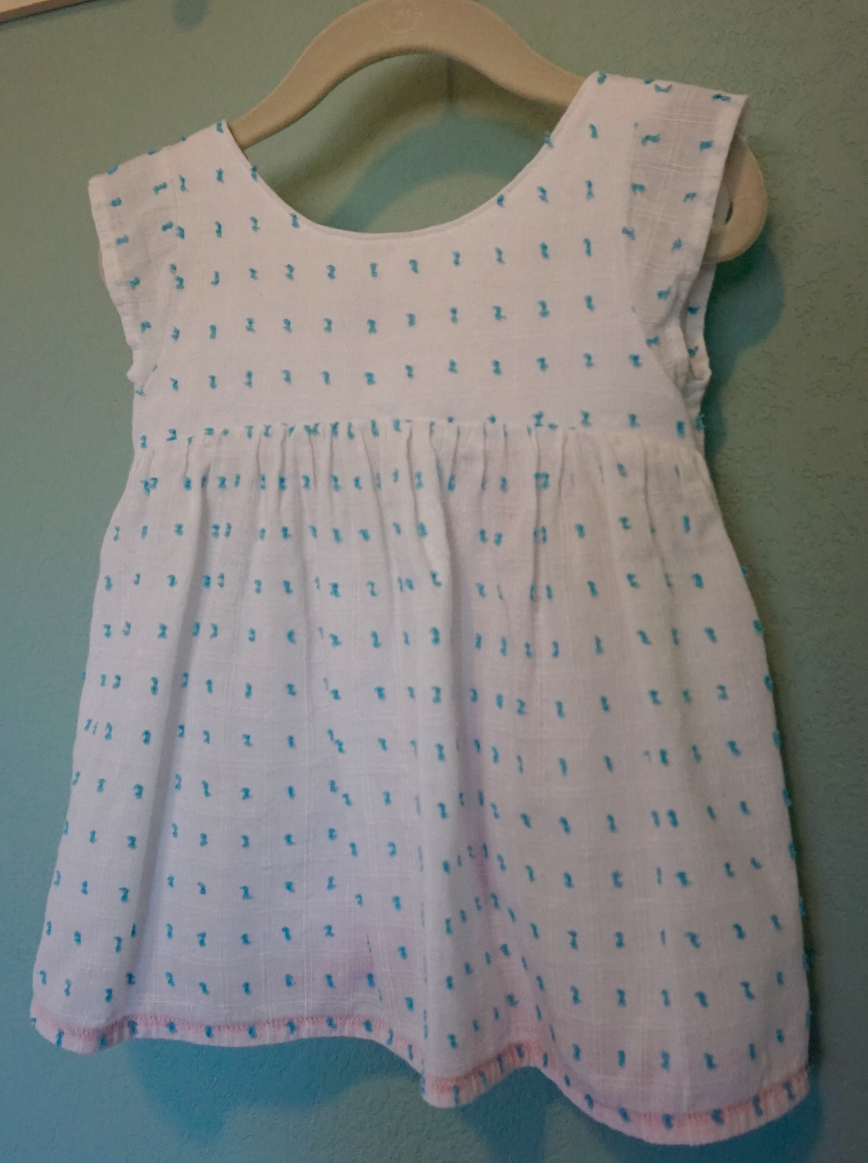 I used a swiss dot voile fabric I had in my stash. Since it’s somewhat sheer, I interlined the bodice (sewed the lining and main fabric as though it were a single fabric) with some white broadcloth. I left the rest of the top unlined since it’ll be great for those hot summer days.