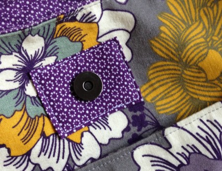 All but one of the bags are still holding up well, but with heavy daily use, half of the magnetic snap starting pulling through the fabric and interfacing. At first I just squirted some Fray Check on that hole, but alas, it needed more than that. Of course, I was just being lazy 🙂